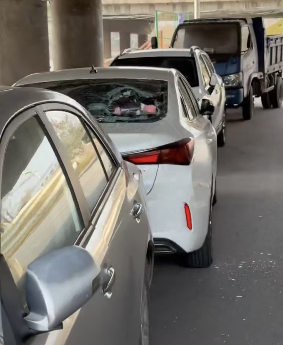 “被砸车辆在宝鸡市渭滨区海棠体育公园附近,川陕路清姜河对面的公园外侧河道边小路上。”一位网友表示,该区域并未划定公共停车位,但长期有不少车主在此停放车辆。关于受损车辆数量及情况,其介绍:“有四五十辆吧,全部是车窗或车身被砸,有的挡风玻璃被砸得粉碎,有的车尾灯受损,还有的车身被砸出一两个洞,受损程度不一样。”